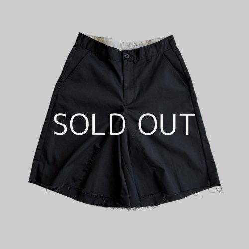REDKAPのワークパンツを裁断、再構築したバギーシルエットのショーツパンツ。