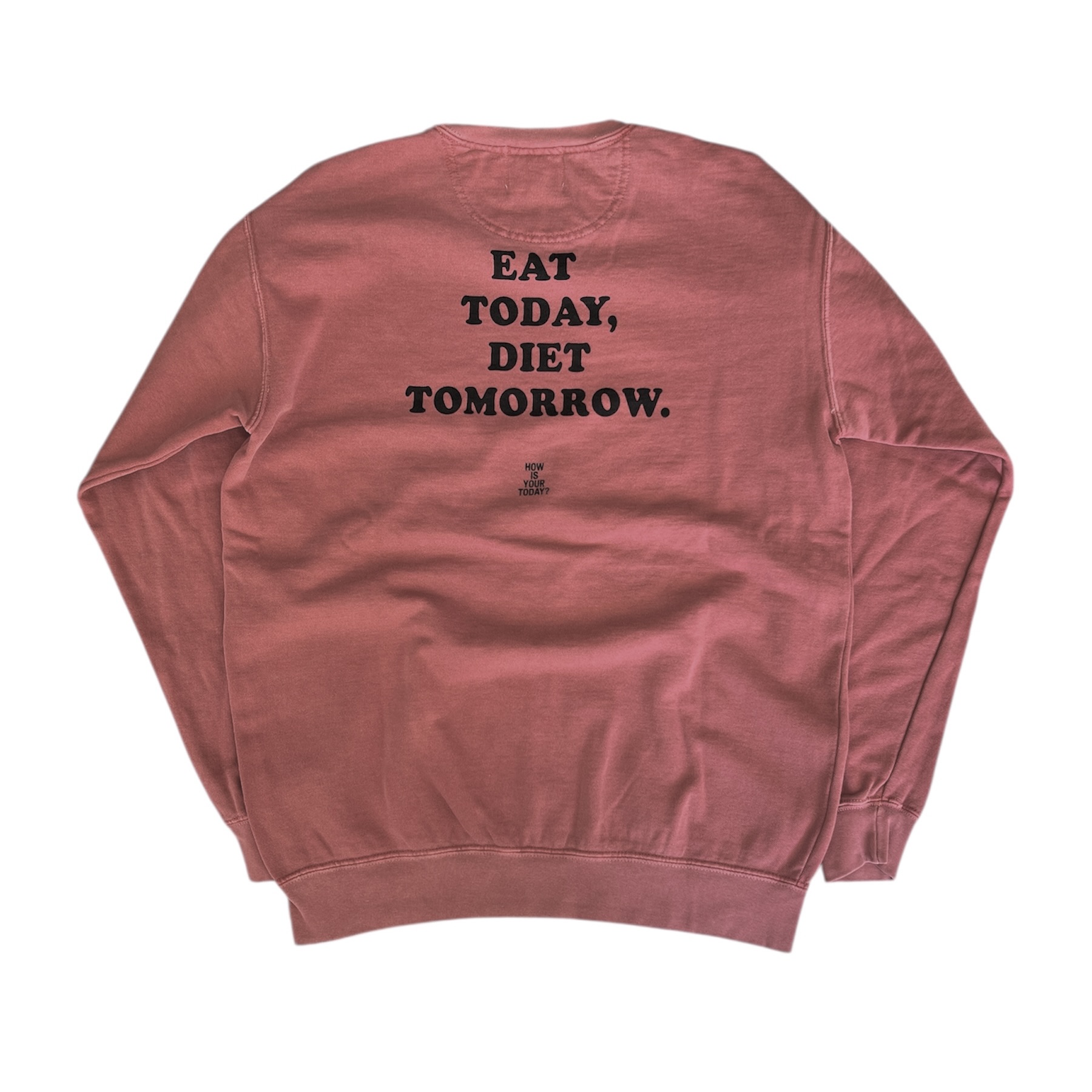 フロントには寿司のイラストとTOKYOの文字、バックにはユーモアたっぷりにEAT TODAY, DIET TOMORROWとワンパクなプリント。